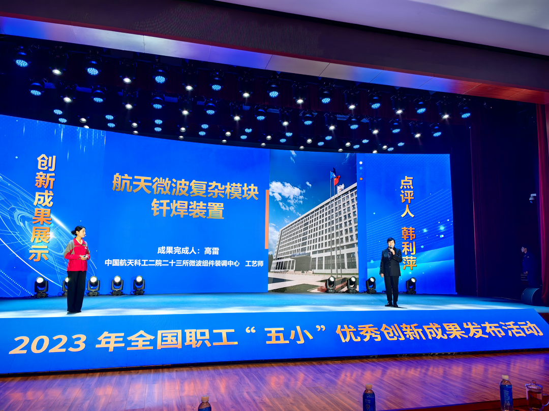 1月16日,由全國總工會(huì)勞動(dòng)和經(jīng)濟(jì)工作部、中國工人出版社聯(lián)合主辦的2023年全國職工“五小”優(yōu)秀創(chuàng)新成果發(fā)布活動(dòng)在江蘇徐州舉行。全國總工會(huì)副主席、書記處書記馬璐出席活動(dòng)。此次發(fā)布活動(dòng)揭曉了20項(xiàng)優(yōu)秀創(chuàng)新成果,中國航天科工二院23所微波組件裝調(diào)中心“航天微波復(fù)雜模塊釬焊裝置創(chuàng)新成果”獲此榮譽(yù),并作為5個(gè)最具代表性作品之一在成果發(fā)布活動(dòng)上進(jìn)行匯報(bào)交流,大國工匠二院二八三廠精密制造車間主任曹彥生受邀作為專家點(diǎn)評(píng)職工創(chuàng)新成果。