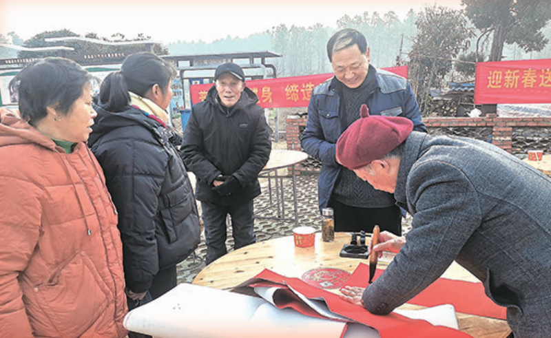 村民們開展寫春聯(lián)送福字活動