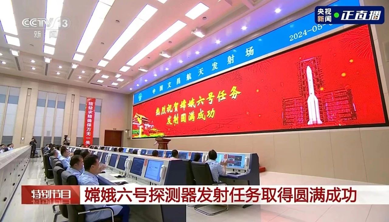 5月3日17時27分,嫦娥六號探測器由長征五號遙八運載火箭在中國文昌航天發(fā)射場發(fā)射,之后準(zhǔn)確進(jìn)入地月轉(zhuǎn)移軌道,發(fā)射任務(wù)取得圓滿成功。嫦娥六號探測器由此開啟世界首次月球背面采樣返回之旅,預(yù)選著陸和采樣區(qū)為月球背面南極-艾特肯盆地。