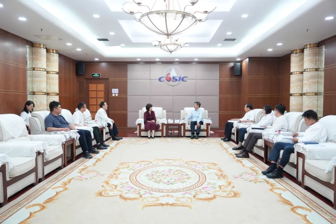 陳錫明首先對曹萍、胡俊一行的到來表示歡迎,并介紹了航天科工的基本情況和產業布局,回顧了近年來雙方在科技創新、人才培養等領域共同取得的成果。陳錫明表示,當前航天科工深入學習貫徹習近平強軍思想,堅決履行強軍首責,聚焦主責主業,充分發揮國家重點實驗室、國家工程技術研究中心等平臺的創新驅動作用,持續發展新質生產力、生成新質戰斗力,不斷增強核心功能、提高核心競爭力,推動企業高質量發展。多年來,電子科大為航天科工、航天事業發展培養輸送了大批優秀人才,為國防建設作出了重要貢獻。航天科工與電子科大有著廣泛的合作基礎,愿同校方一道在創新平臺建設、裝備信息化、工程碩博士聯合培養、人才引進等領域探索更深層次合作,為共同邁向“世界一流”,建設航天強國、教育強國作出新貢獻。