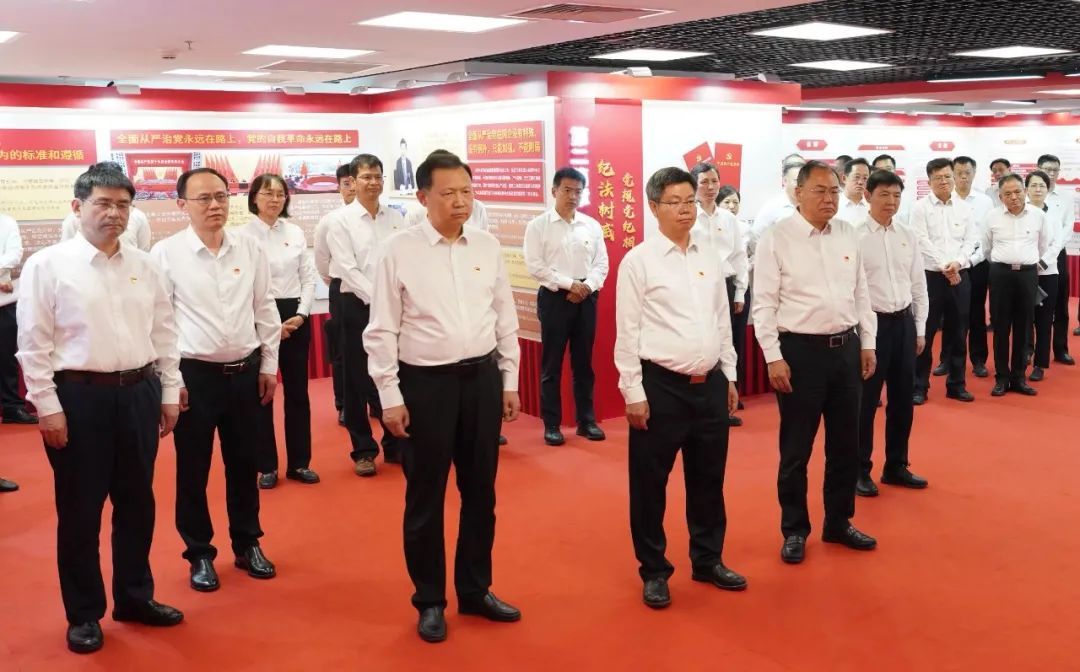 集團(tuán)公司黨組一行認(rèn)真聆聽講解,深入學(xué)習(xí)交流。從“政治鑄魂——習(xí)近平總書記重要論述”“紀(jì)法樹威——黨規(guī)黨紀(jì)相關(guān)要求”“傳承增信——黨的優(yōu)良傳統(tǒng)”,到“嚴(yán)管促行——國務(wù)院國資委黨委紀(jì)律建設(shè)成效”“警示立戒——反面典型案例”“實(shí)干建功——工作展望”,大家通過觀看圖文、視頻、實(shí)物等形式多樣的展品展示,進(jìn)一步學(xué)習(xí)領(lǐng)會習(xí)近平總書記關(guān)于國資央企的重要指示批示精神和黨的紀(jì)律建設(shè)的重要論述,學(xué)習(xí)把握《中國共產(chǎn)黨紀(jì)律處分條例》新增、修訂內(nèi)容,全面了解國務(wù)院國資委黨委強(qiáng)化政治引領(lǐng)、加強(qiáng)政治監(jiān)督、深化紀(jì)律建設(shè)、抓實(shí)巡視工作等方面的做法舉措,集中觀看近年來國資央企發(fā)生的具有代表性的違規(guī)違紀(jì)案例。
