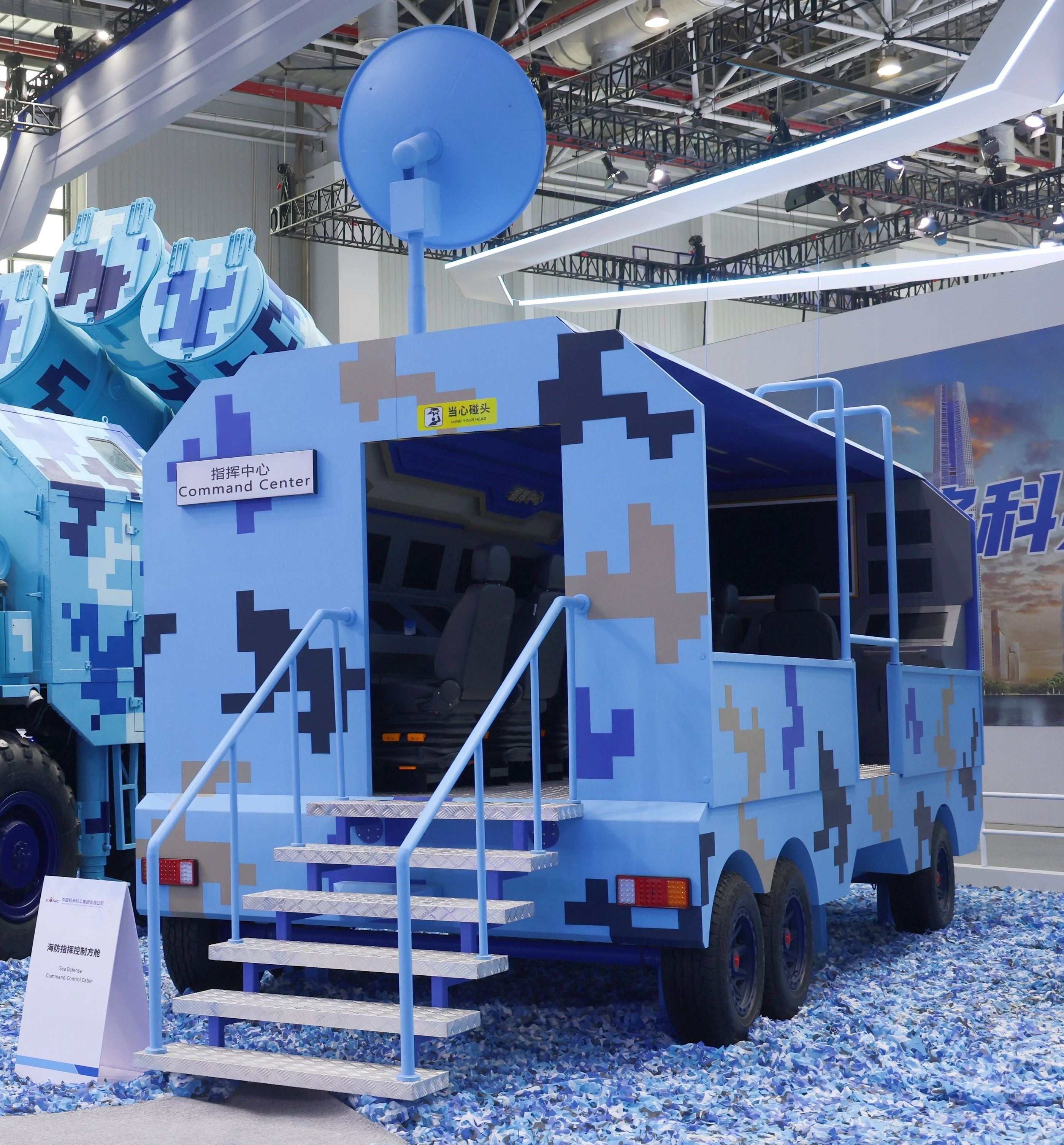 首次亮相的海防指揮控制方艙是海防體系的“最強大腦”,可實施作戰指揮、行動控制與武器交戰控制、作戰效果評估,是指揮效能與火力效能的“倍增器”。