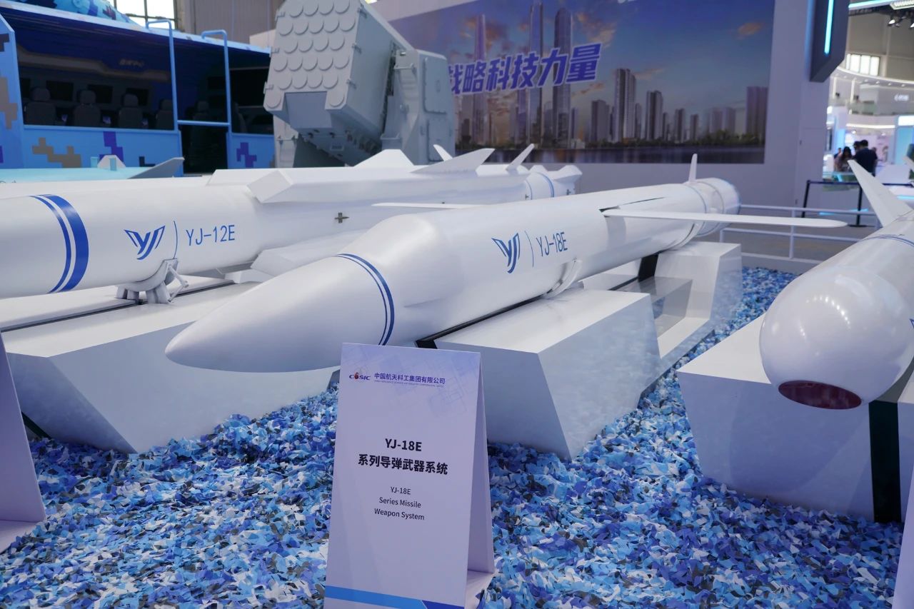 作為此次參展的重量級導彈武器之一,YJ-18E導彈武器系統采用“亞聲速巡航+超聲速打擊”體制,兼顧亞聲速大航程、末段超聲速攻擊的獨特優勢,可遠程隱蔽打擊大中型水面艦艇及編隊、小型艦艇以及陸上固定目標,具有飛行距離遠、隱蔽性能好、突防能力強、毀傷效果好、使用方便等突出特點。
