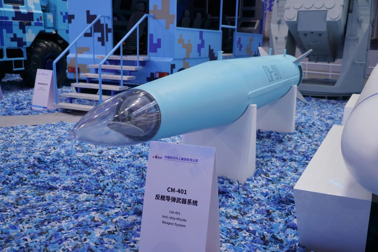 CM-401新型高速反艦武器系統,全程超音速飛行,飛行末段采用俯沖式攻擊彈道,具有多彈道協同、毀傷效果好、突防能力強、體系作戰等特點,可實現對大中型艦船、編隊及港口目標的快速精確打擊。