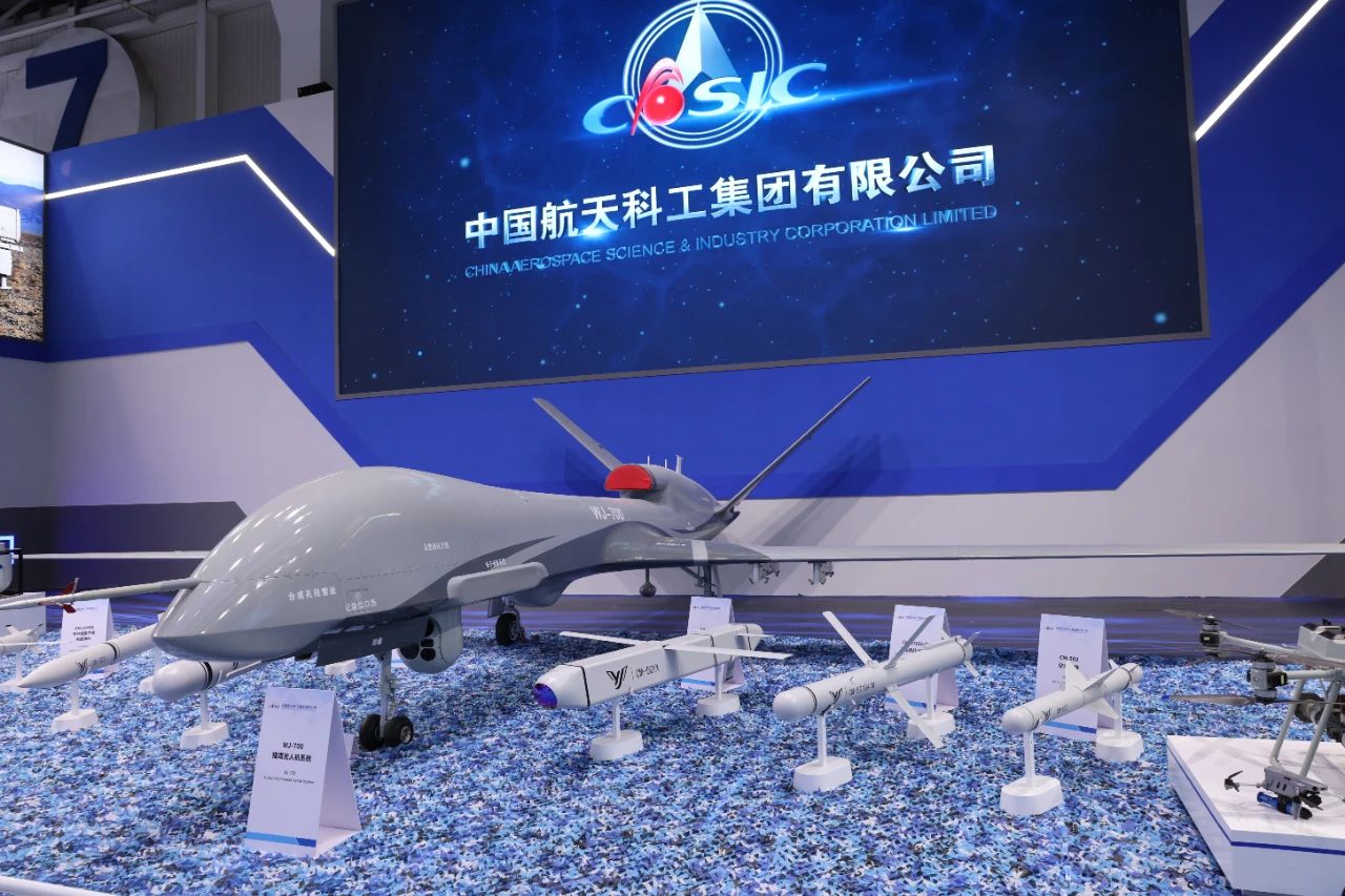 中國航天科工集團有限公司攜旗下全新升級的無人作戰體系亮相,WJ-700“獵鷹”高空高速長航時察打一體無人機、WJ-500無人機及系列機載彈藥再次登場。