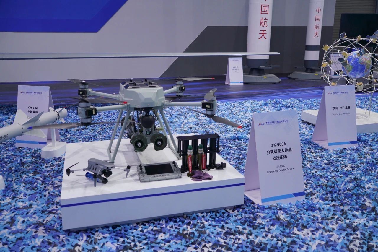 無人作戰體系還展出了ZK-900A分隊級無人作戰支援系統,具有無人集群編隊智能指揮控制與智能指揮決策及全局任務規劃等核心功能。