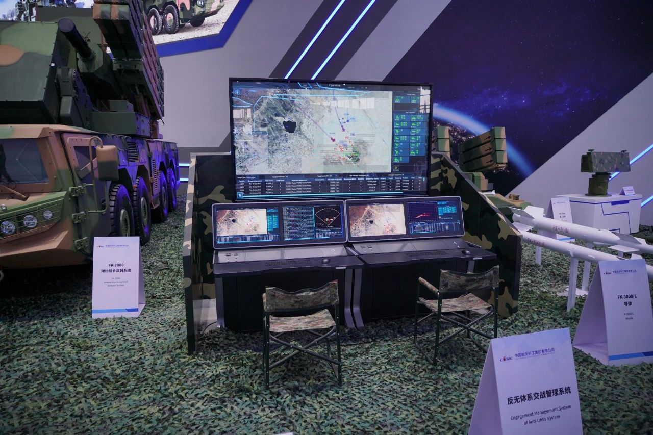 在中國航天科工集團有限公司防空體系展區,HQ-9BE遠程防空武器系統、FD-2000A中遠程防空武器系統、FK-3中遠程防空武器系統、HQ-17AE近程防空武器系統等“明星裝備”煥新亮相。