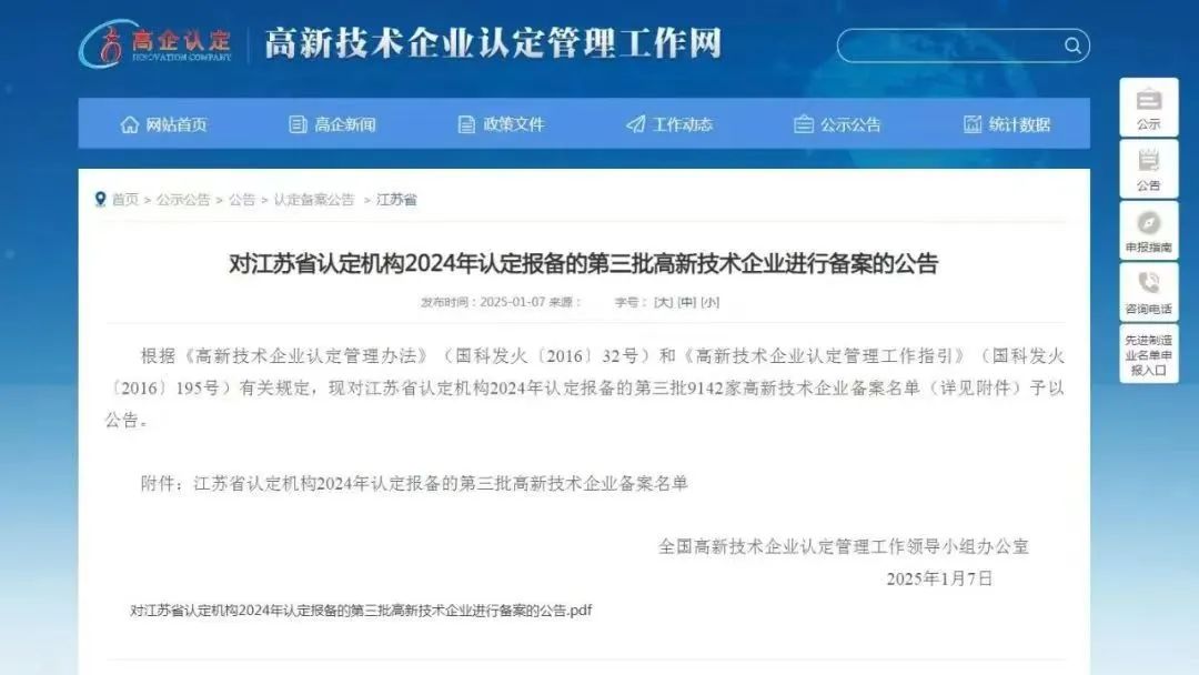 近日,江蘇省認(rèn)定機(jī)構(gòu)2024年認(rèn)定報(bào)備的第三批高新技術(shù)企業(yè)備案名單出爐,南京晨光公司再次通過(guò)“高新技術(shù)企業(yè)”認(rèn)定。此次入選標(biāo)志著公司在核心自主知識(shí)產(chǎn)權(quán)、科技成果轉(zhuǎn)化能力等方面得到國(guó)家相關(guān)部門(mén)的肯定與認(rèn)可。