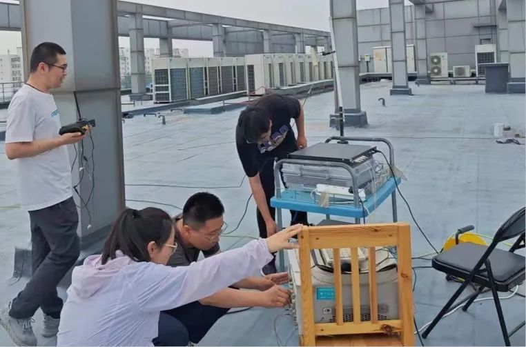 坐標58號樓樓頂,北京這些日子時而艷陽高照,時而潮濕悶熱,樓頂上更是熱氣騰騰,設備摸上去都燙手。但為了保障項目產品順利交付,5G通信導航事業部的技術人員正抓緊進行著產品測試工作,他們幾乎每天在樓頂上一呆就是幾個小時,任憑身上的衣服濕了又干,干了又濕,沒有一絲退縮。