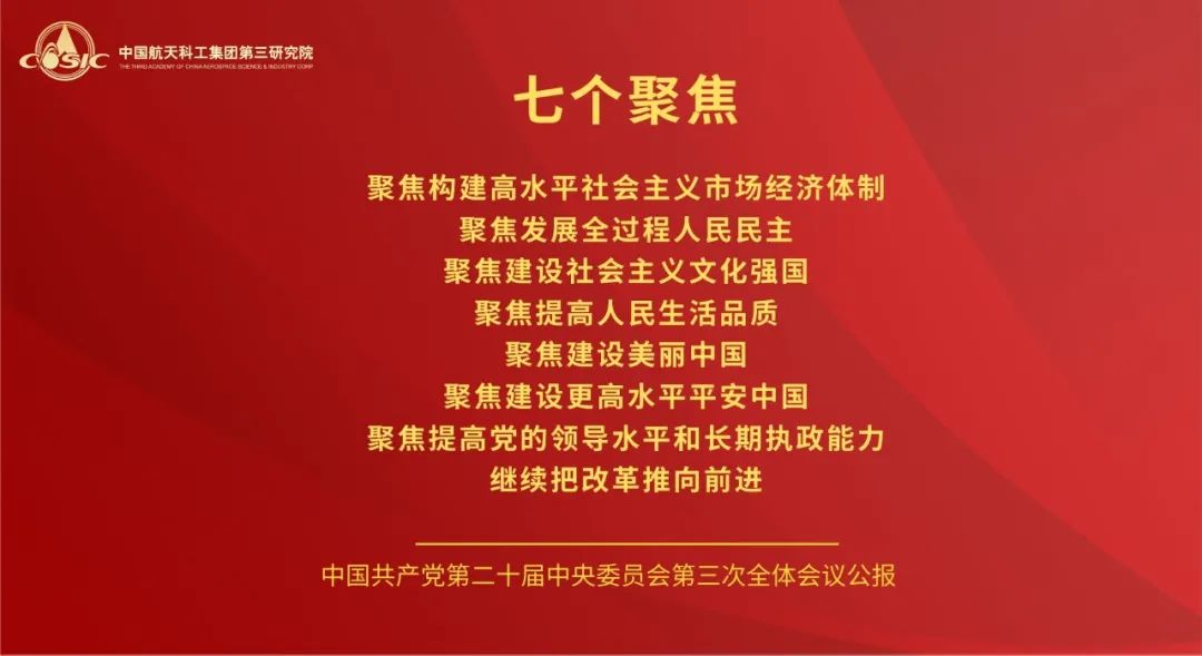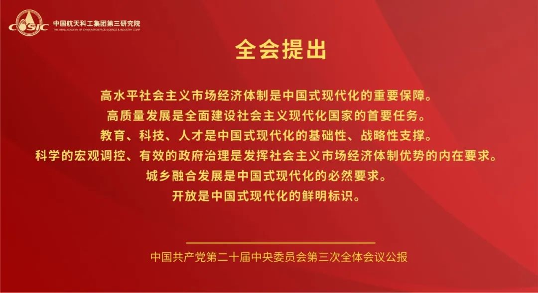 黨的二十屆三中全會(huì),是在以中國(guó)式現(xiàn)代化全面推進(jìn)強(qiáng)國(guó)建設(shè)、民族復(fù)興偉業(yè)的關(guān)鍵時(shí)期召開(kāi)的一次十分重要的會(huì)議。航天三院黨委將學(xué)習(xí)好宣傳好貫徹好黨的二十屆三中全會(huì)精神作為當(dāng)前和今后一個(gè)時(shí)期的一項(xiàng)重大政治任務(wù),高度重視,迅速行動(dòng),引導(dǎo)三院全體黨員干部職工把思想和行動(dòng)統(tǒng)一到全會(huì)精神上來(lái),把智慧和力量凝聚到落實(shí)全會(huì)精神和部署上來(lái),聚焦主責(zé)主業(yè),履行強(qiáng)軍首責(zé),持續(xù)推動(dòng)飛航事業(yè)高質(zhì)量發(fā)展。