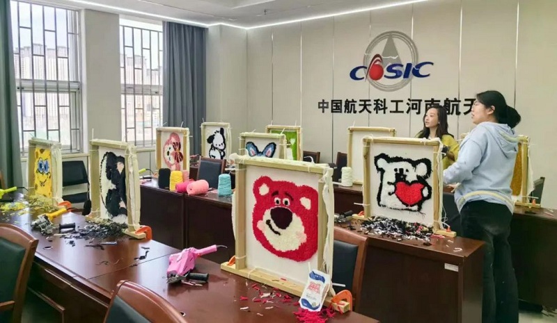 3月8日,為增加節日氣氛,展現新時代巾幗風采,河南航天本部工會開展了慶?!叭恕眹H婦女節簇絨毛毯DIY活動。隨著機器響起,映入眼簾的是女職工拿起簇絨槍在一張簇絨布上扎扎戳戳。在老師的指導下,大家逐漸找到訣竅,投影描繪、挑選毛線、運作簇絨槍、刷乳膠貼布、修整鏟平……簇絨槍“突突”的聲音和大家驚喜歡快的談笑聲交織著,奏出一曲明快奔放地交響樂。經過不懈的努力,心儀的圖案也一點點變成柔軟的展現,琳瑯滿目、豐富多彩。